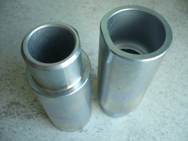 Dimensions: Sleeve diameter above 50 mm, sleeve diameter below 40mm, sleeve overall height 130mm. The corresponding rubber plate has a M30 threaded spindle and has a diameter of 134mm.