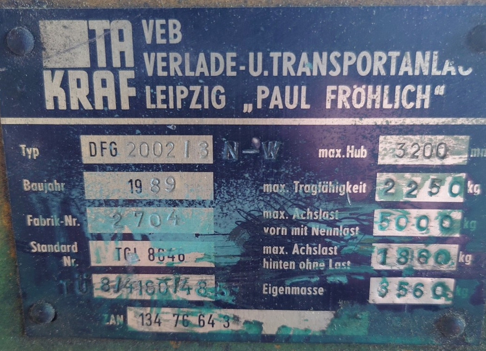 Load capacity: max. 2250 kg