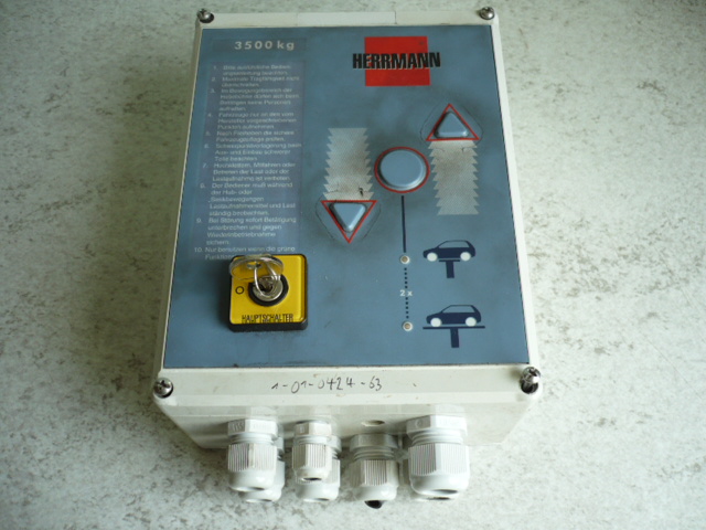 | You are purchasing a used Unexamined on function plastic box from German production (Made in Germany) for Herrmann lifting platform. The exact amount you can enter below the price under number. Technical data on the nameplate: switchbox is for various Herrmann models depending Year for lifting platforms with main switch and control buttons Dimensions: 150 mm width x 78 mm height x 200 mm Length. Other parts available for purchase in our shop by clicking on the appropriate Shop Category. You have the opportunity to purchase more items in our store. We also answer questions via email: admin@awt-shop.de or phone: +49(0)176/21193525 and +49(0)38295/774067. |