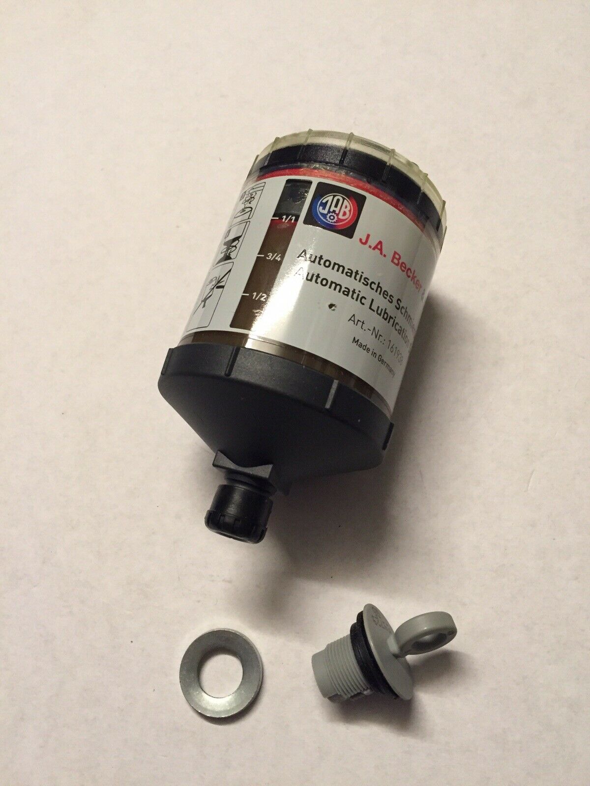 You are purchasing a lubricant reservoir (Perma Tec GmbH & Co. KG) for J.A. Becker & Sons lifting platforms / underfloor platforms. |