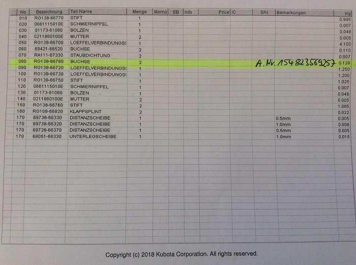 1x bearing bush for bucket link Kubota mini excavator type KX41-3V (SC) third generation or KX015-4 KX016-4 KX018-4 KX019-4 fourth generation KUB No. RG138-6678-0 RG138-66780.