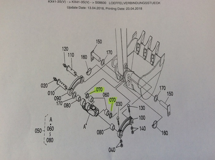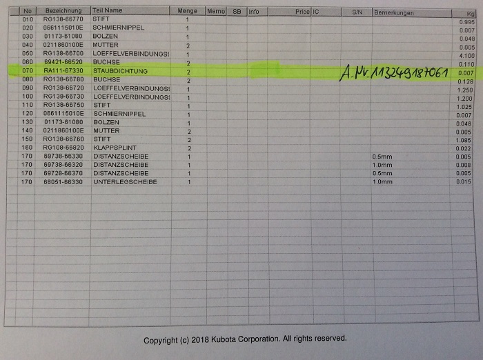 1x dust seal for, among other things, mounting boom connection swivel boom & bucket connector Kubota mini excavator type KX41-3V (SC) S (V) third generation KUB No. RA111-67330 or RA11167330.
