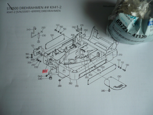 1x bearing bush item 20 for boom bracket/rotating frame Kubota mini excavator type KX41-2 second generation from S. No. 55001-69999 KUB No. 69721-41120.