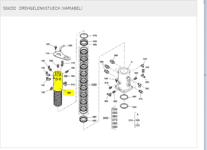 1x original shaft swivel joint variable for Kubota mini excavators, including type KX41-2 VC / alpha / 2 S(V) second generation, serial number:??? KUB No. RG108-8861-0.