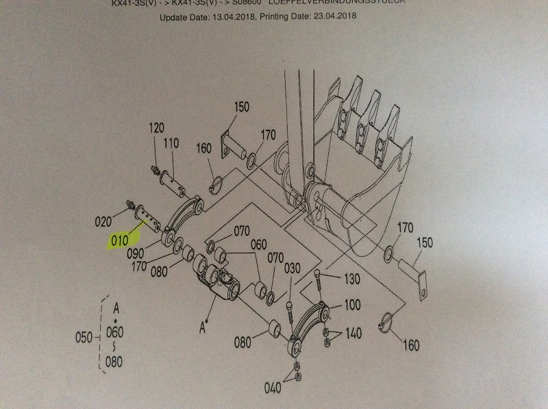 1x bolt (pin) for connector Kubota mini excavator type KX41-3 S (V) third generation KUB No. RG 138-66770.