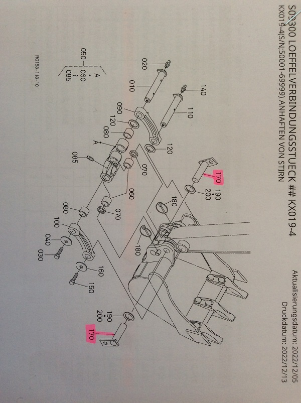 1x bolt (pin) for Kubota mini excavator type KX41-3 third generation or KX015-4 / KX016-4 / KX018-4 / KX019-4 fourth generation KUB No. RG13866764 RG 138-6676-0.