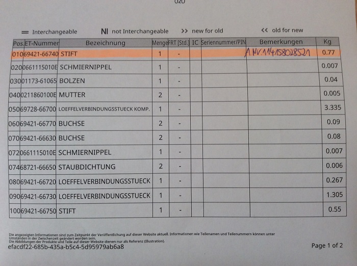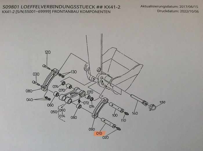1x original bolt (pin) for bucket cylinder / connectors Kubota mini excavator type KX41 (H) first generation & KX41-2 / Alpha / S(V) second generation KUB No. 69421-66740.