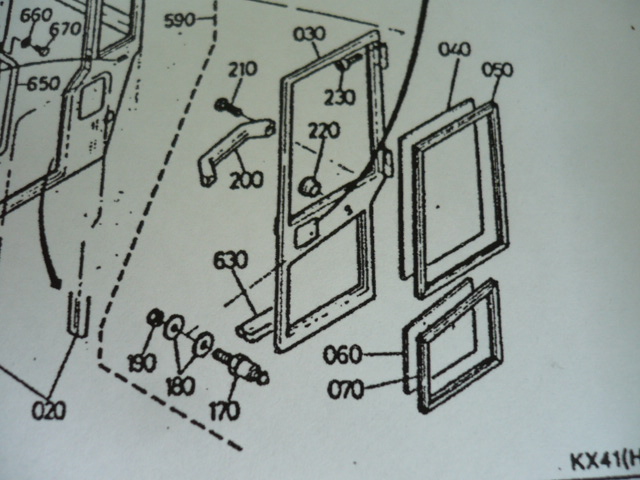 1x original window rubber POS. 050 / cabin door (rubber) for Kubota mini excavator type KX41 (H) first generation KUB No. 69729-46240.