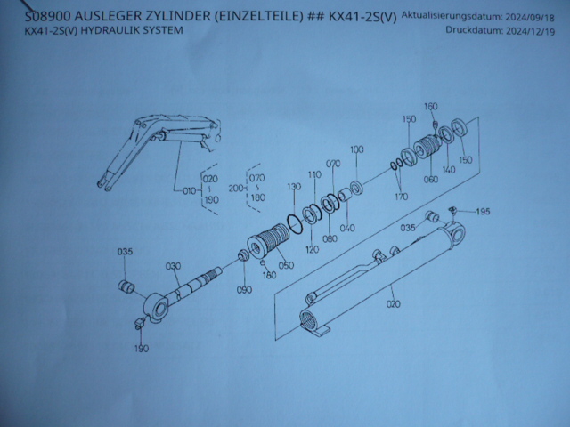 1x seals for pipe cylinder boom cylinder/lifting cylinder 55mm, arm lifting (cylinder on the cabin) Kubota mini excavator type KX41-2 (V)/(VC) second generation KUB. No. 69521-91110.
