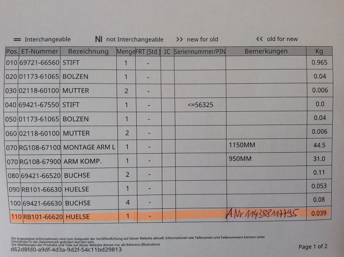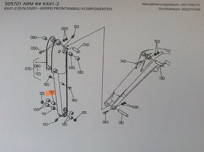 1x sleeve for Kubota mini excavator type KX41-2 (V) second generation KUB No.RB101-66620 or RB101-6662-0.