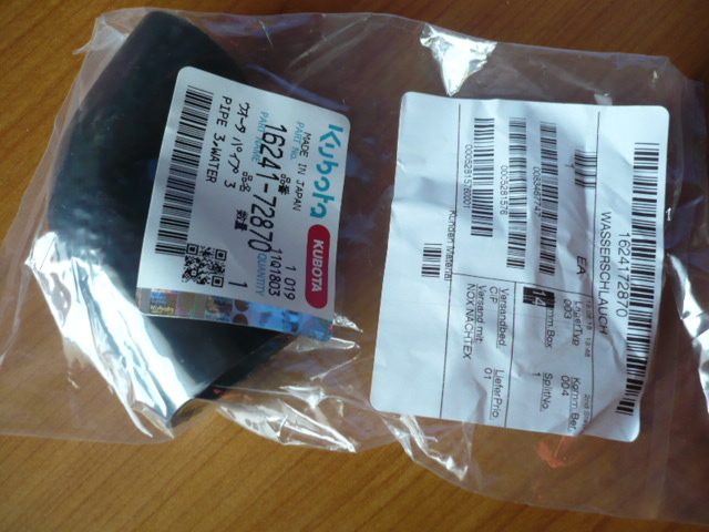 1x Original water hose (pipe, water pump) for Kubota Mini Excavator Type KX41 (H) first generation KUB No. 16241-7287-0 & 16241-72870.