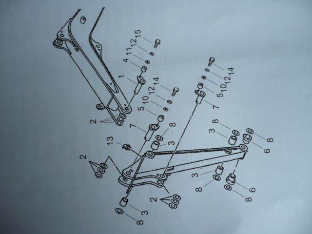 1x bushing & bolt set B series for Yanmar mini excavator boom type B15-3 third generation YAN No.YANADB 00400.