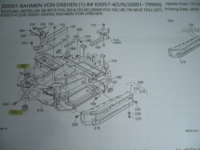 1x socket position 030 swivel bracket KX series (all positions underlined on exploded view) for Kubota mini excavator type KX 057-4 (serial number 50001<79999) fourth generation KUB no. RD55141142.