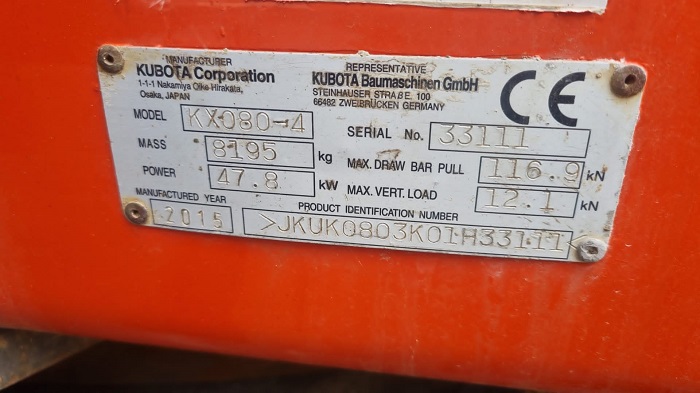 You are purchasing a bonnet lock (assy, key) for e.g. Kubota KX080-4 (fourth generation).