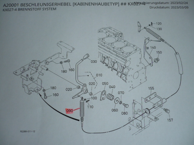 1x throttle cable / hand throttle cable for accelerator lever Kubota mini excavator type KX27-4 (length = 2370mm) fourth generation KUB. No. RG268-35152.