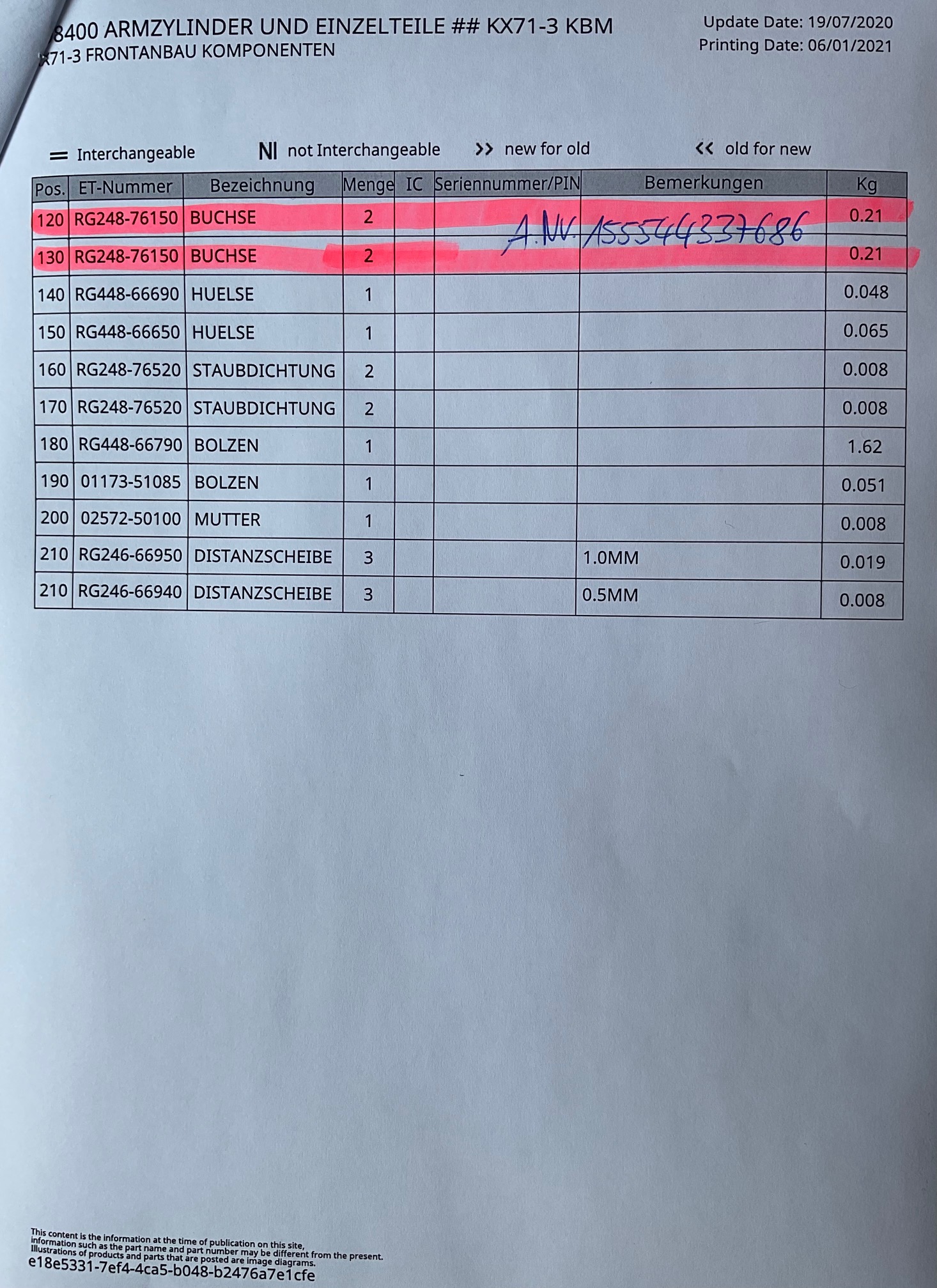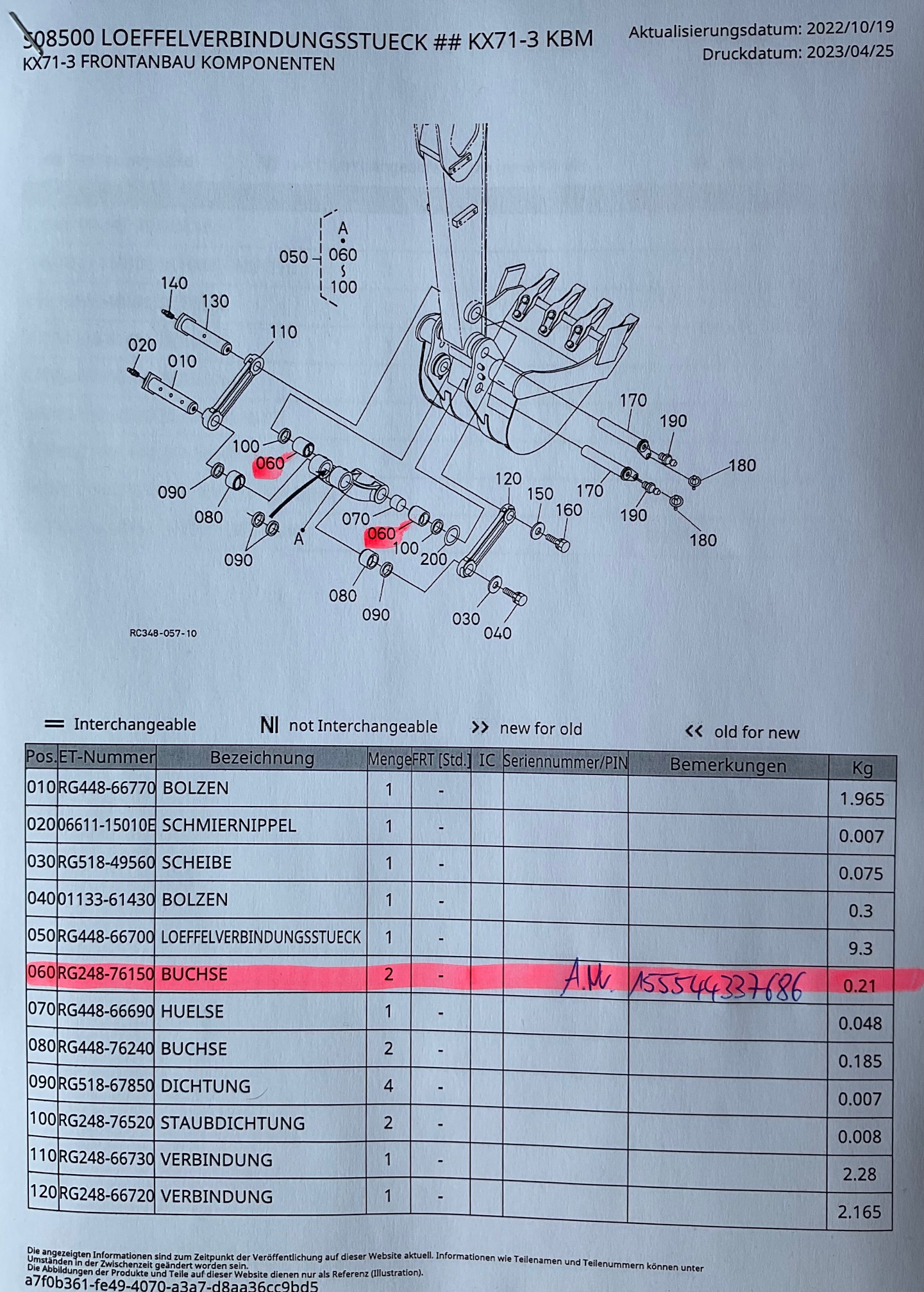 1x steel bushing for middle connector Kubota KX71-3 series (all positions pos.060 on exploded drawing) for Kubota mini excavator type KX71-3 third generation KUB No. RG248-76150 or RG 248-7615-0.