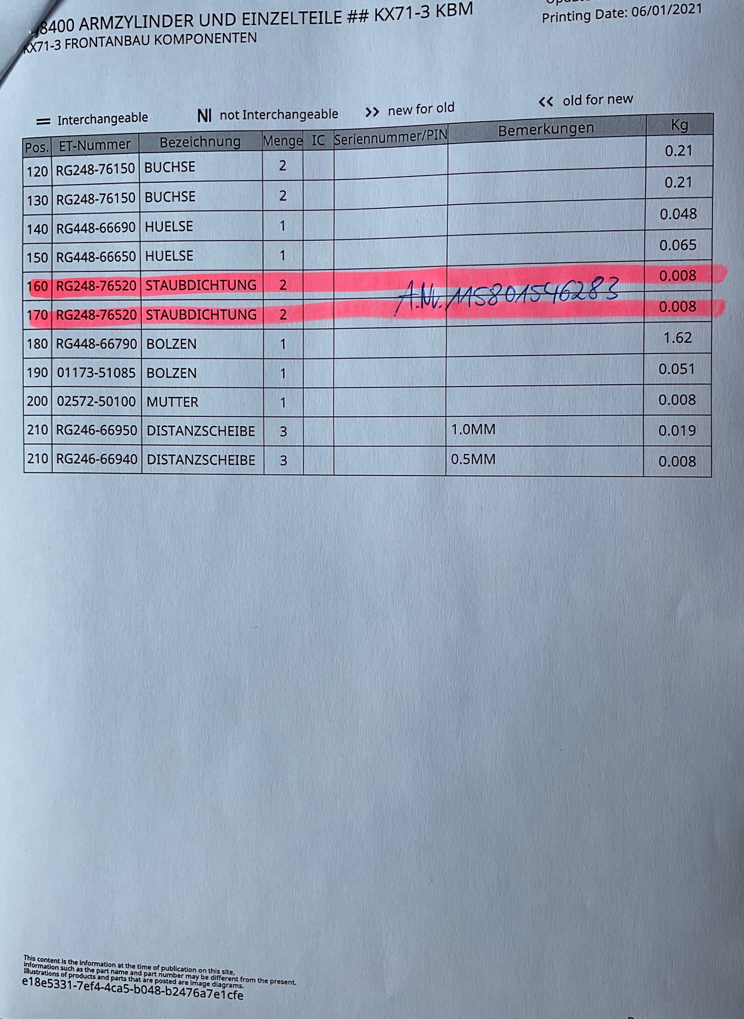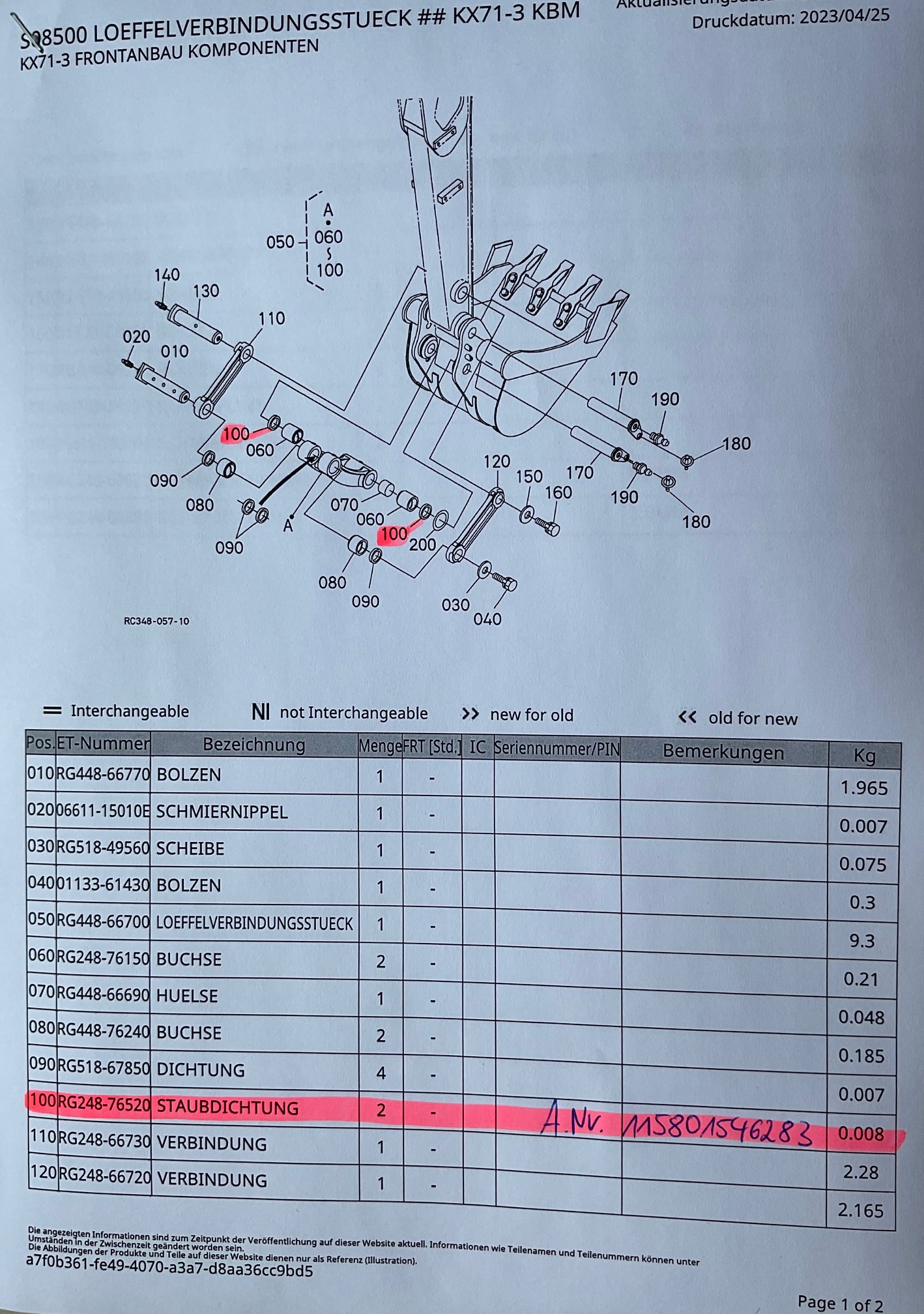 1x sealing ring for Kubota mini excavator type KX71-3 third generation KUB. No. RG248-76520.