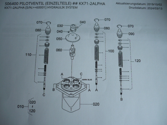 You are purchasing a guide (position 080) for pilot valve in hand control (installed 2x) including Kubota KX71-2 Alpha valve for hydraulic system.