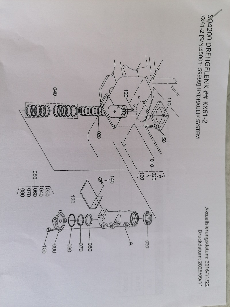 1x Original seals POS. 050 for swivel joint complete seal kit Kubota mini excavator, among others, type KX61-2 serial number 55001-59999 / KX61-2 ALPHA SN > 60001 / KX71-2 serial number: 55001-56419 / alpha SN > 60001 / 2 S(V) / KX91-2 / K025 second generation KUB No. RG208-6234-0 / seal kit.