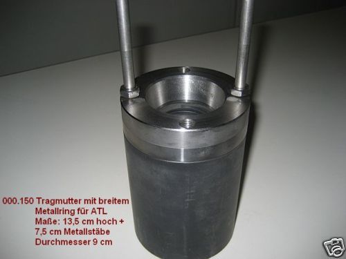 | You are purchasing a spindle nut (lifting nut) for Nussbaum Lifts / lifting platform. The exact amount you can enter below the price under number. The load nut also fits for Type ATL, SEL (lifts with one spindle) to 5 tons lifting capacity. Dimensions: trapezoidal thread 43mm (Spindle diameter) x 7mm (thread lead), height 140 mm + 75 mm metal rod height, diameter 92 mm. Other parts available for purchase in our shop by clicking on the appropriate Shop Category. After you put the product to the cart, you can purchase additional products in our online shop. We also answer questions via email: admin@awt-shop.de or phone: +49(0)176/21193525 and +49(0)38295/774067. |