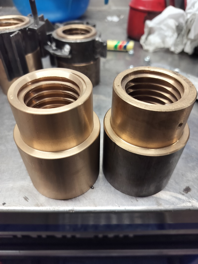 | You are purchasing a unused fully functional lifting nut for Stenhoj lift (2 tons to 2.5 tons capacity). The exact amount you can enter below the offer price at the number. The lift nut also fits Stenhoj for type DS2 M 301, 671 A, DS2 Master, Electronic, M&E 303, DS2-A, DS2 model 309, DS2 M 303/313 (Master), DS2 S 503, DS2 E 323, DS2 650*1, DS2 650, DS2 652A, DS2 652, DS2 651, DS2 655, DS2 Master type DS2 431, up to model year 01.12.1995 Mascot 613 611 617 and DS2 Maestro; after that, buy the new plastic version. Dimensions: trapezoidal thread 40mm (Spindle diameter) x 5mm (thread lead), 80mm long and top 50 mm bottom diameter of 60 mm. Other parts available for purchase in our shop by clicking on the appropriate Shop Category. After you put the product to the cart, you can purchase additional products in our online shop. We also answer questions via email: admin@awt-shop.de or phone: +49(0)176/21193525 and +49(0)38295/774067. |