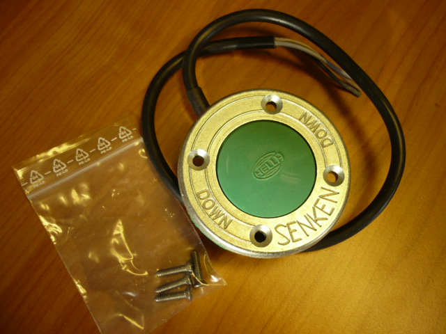 "Lower Green" foot switch with micro switch and connecting cable (78mm-diameter switch) for, inter alia, Liftgate BÄR MBB Palfinger athlete Carglift / Lift Parts Manufacturer Hella no. 6EJ 996.067-611.
