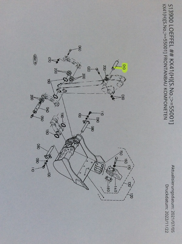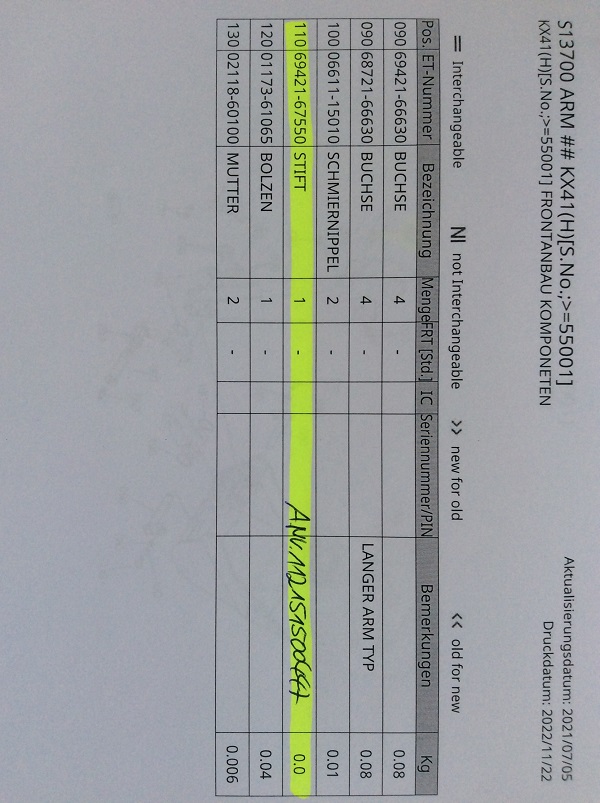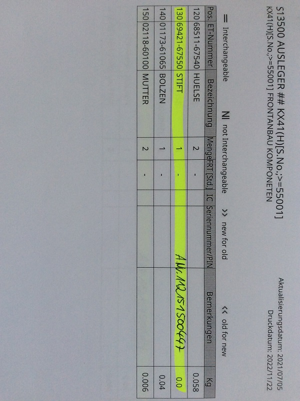 1x pin (Pin) for Kubota mini excavators Type KX 41 (H) first generation KUB Nr.69421-6755-0 or 687216756D.