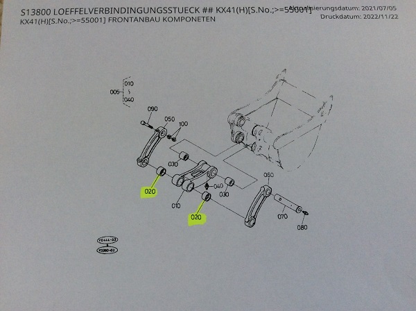 1x bearing bush for Kubota mini excavator type KX41 (H) first generation from S. No. 55404 & KX41-2 second generation KUB No. 69421-6677-0 or 68721-6677-0 or 6872171290.