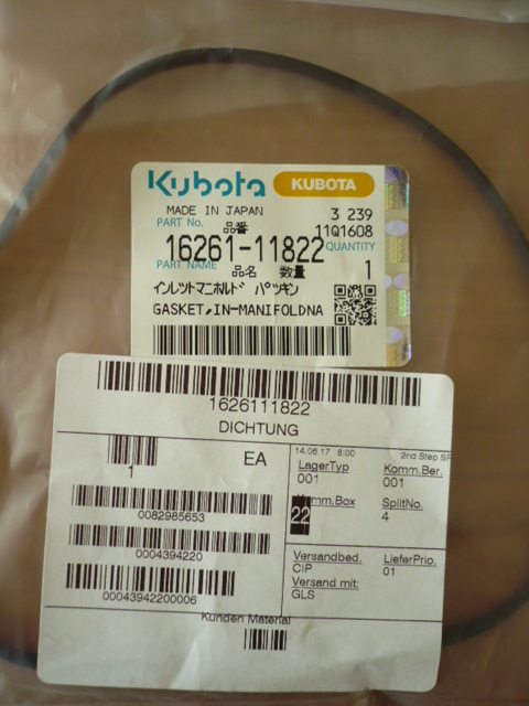 1x Sealing Intake Manifold for Kubota Mini excavator type KX41 (H) first generation KUB No. 16261-1182-2 or 16261-11822.