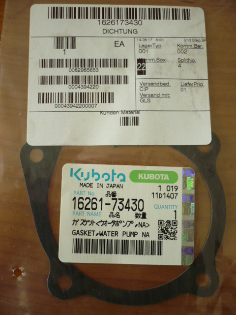 1x seals for water pump flange (gasket water pump) Kubota mini excavator type KX41 (H) first generation KUB No. 16241-7343-0 & 16261-73430.
