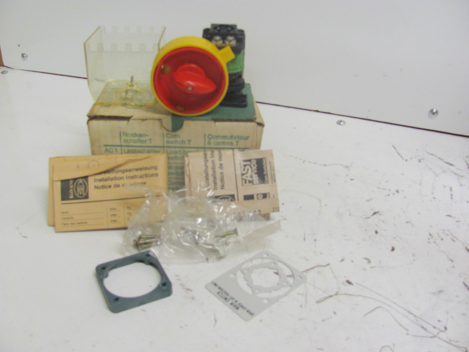 | You are purchasing a unused fully functional cam switches (reversing switch) from German production (Made in Germany) for Zippo lifting platform. The exact amount you can enter below the price under number. Technical specifications on the nameplate: mit Hiko 2S The selector switch is for various Zippo models 220-660V AC1 660V - 20A - 3 - 5,5kw Dimensions: 64mm diameter x 65mm x 120mm. Other parts available for purchase in our shop by clicking on the appropriate Shop Category. After you put the product to the cart, you can purchase additional products in our online shop. We also answer questions via email: admin@awt-shop.de or phone: +49(0)176/21193525 and +49(0)38295/774067. |